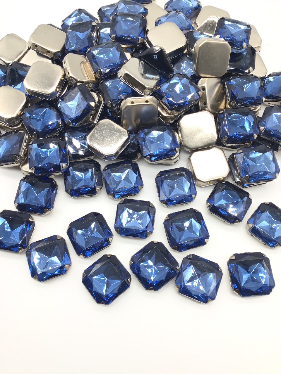 Pedra Engrampada Quadrado 18mm X 18mm Base Prata C/100unidades